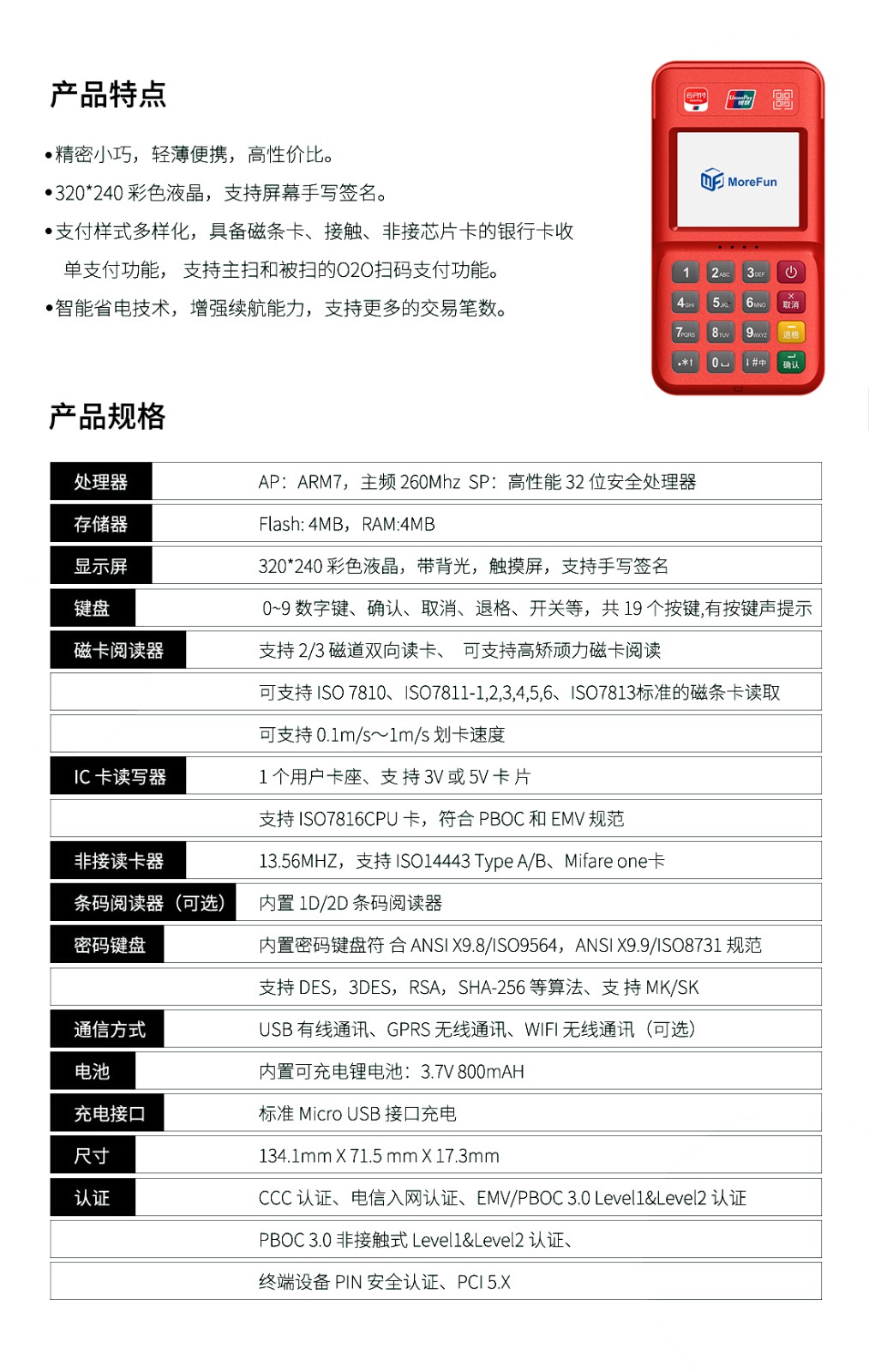 首页>>灵寿产品中心>>灵寿手持无线POS 灵寿电银支付-4G+扫码枪 高配版 * 性能优越:32位高性能ARM11安全CPU;整机通过业内更先进的PCI PED4.X 安全认证及国内受理终端PIN输入设备安全评估检测认证,多项措施保障金融交易的安全;* 时尚外观:外形小巧携带方便,高抗跌落性能、宽工作温度、防水防尘设计、外壳坚固耐刮、户外携带式作业更加耐久可靠。* 通讯备份:支持2G-3G扩展;* 超长续航:3.7V-800毫安稳定续航能力,智能电池管理保证持续工作18小时,待机72小时。 标准配置 返 回